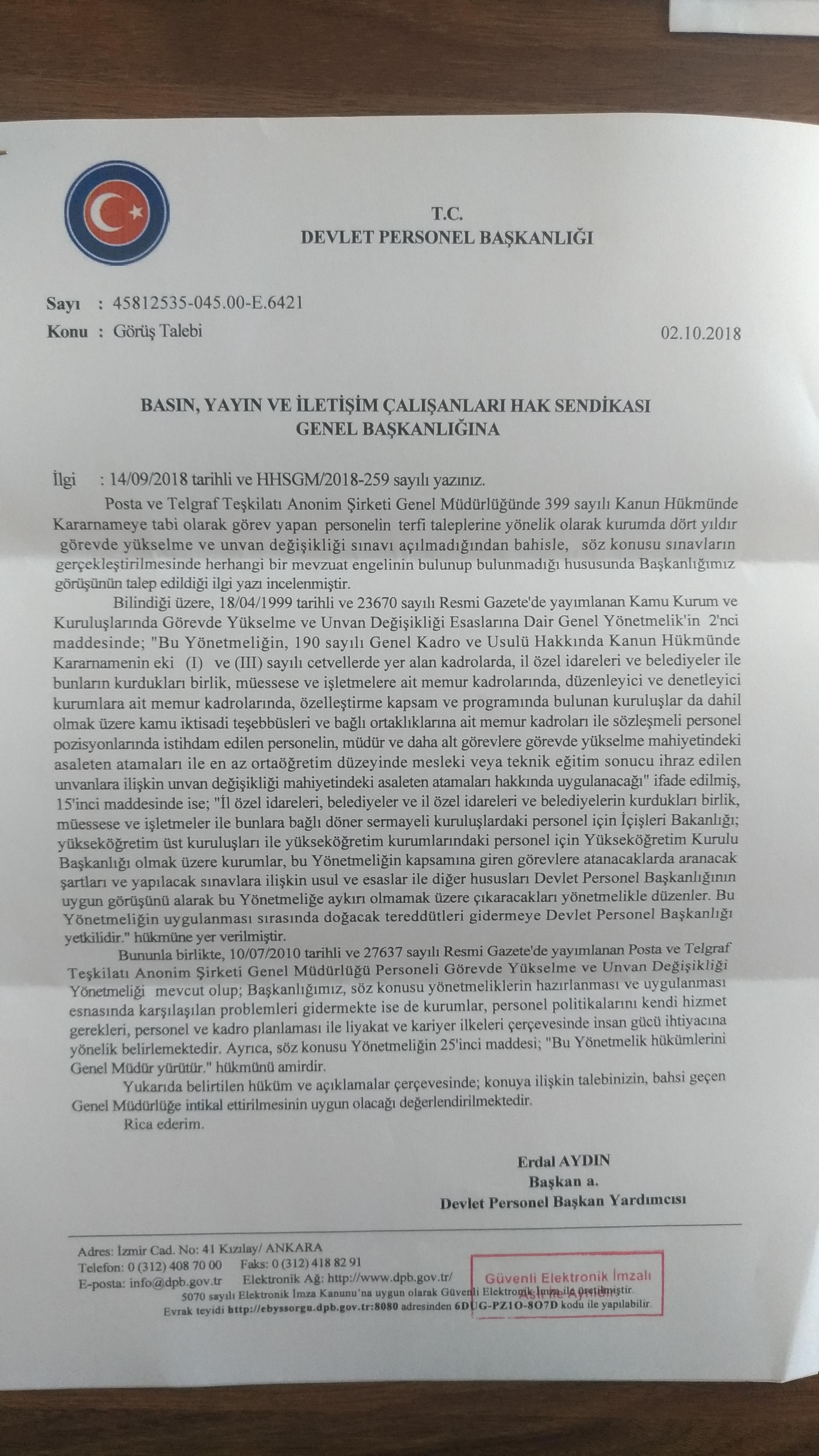 Devlet Personel Baskanligindan cevap geldi.